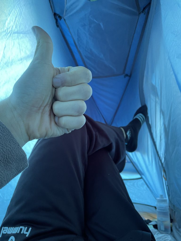 テントの中に冷気が入ってきて朝起きたら冷蔵庫、いやもはや冷凍庫みたいになっている。
