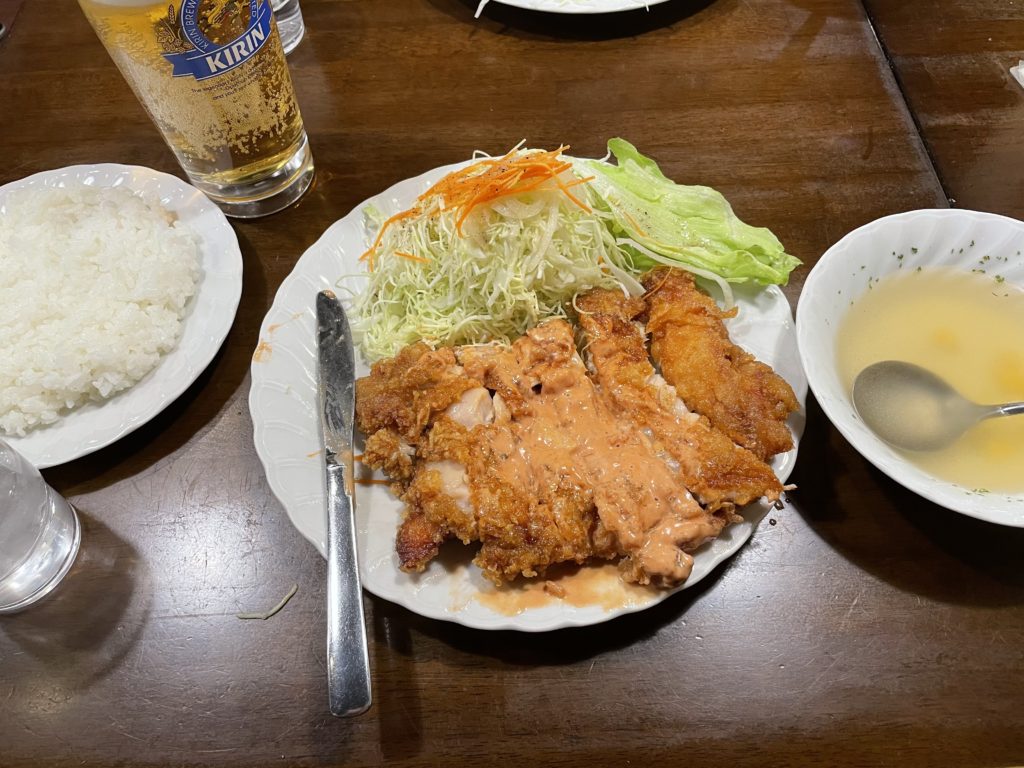 どでかいチキン南蛮と、ビールまでご馳走になった。