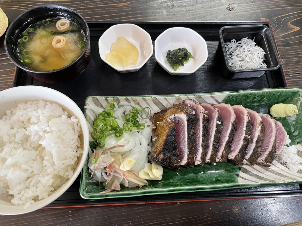 カツオのタタキのお店で、夜ご飯代を浮かすためにご飯を食べまくっていたのでちょっと苦しかったけど