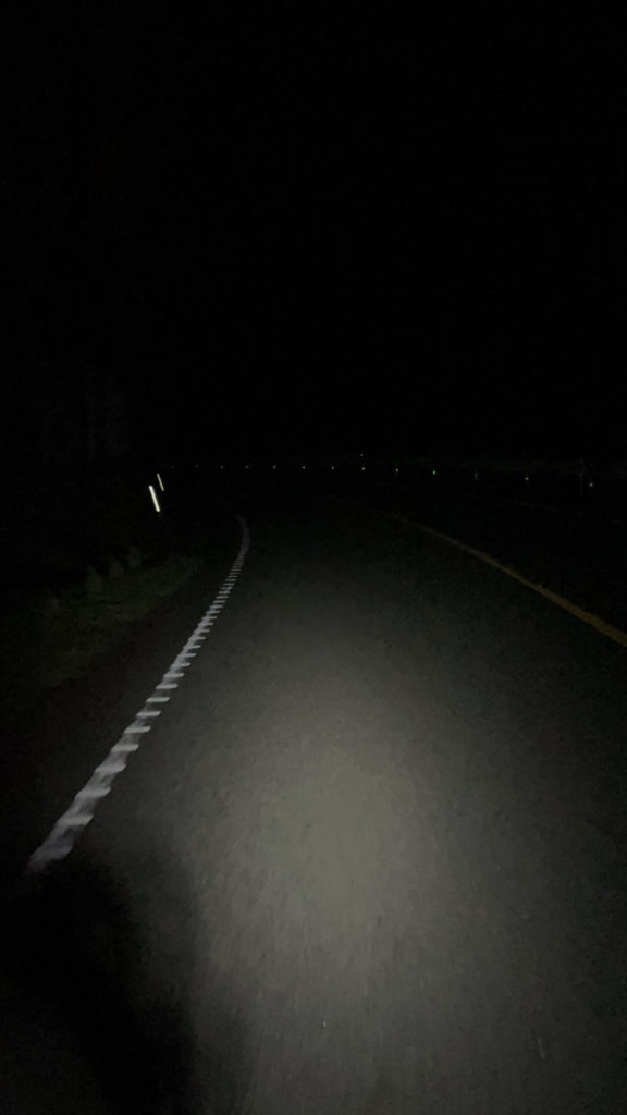 真っ暗で自転車のライトの光だけを頼りに進み、