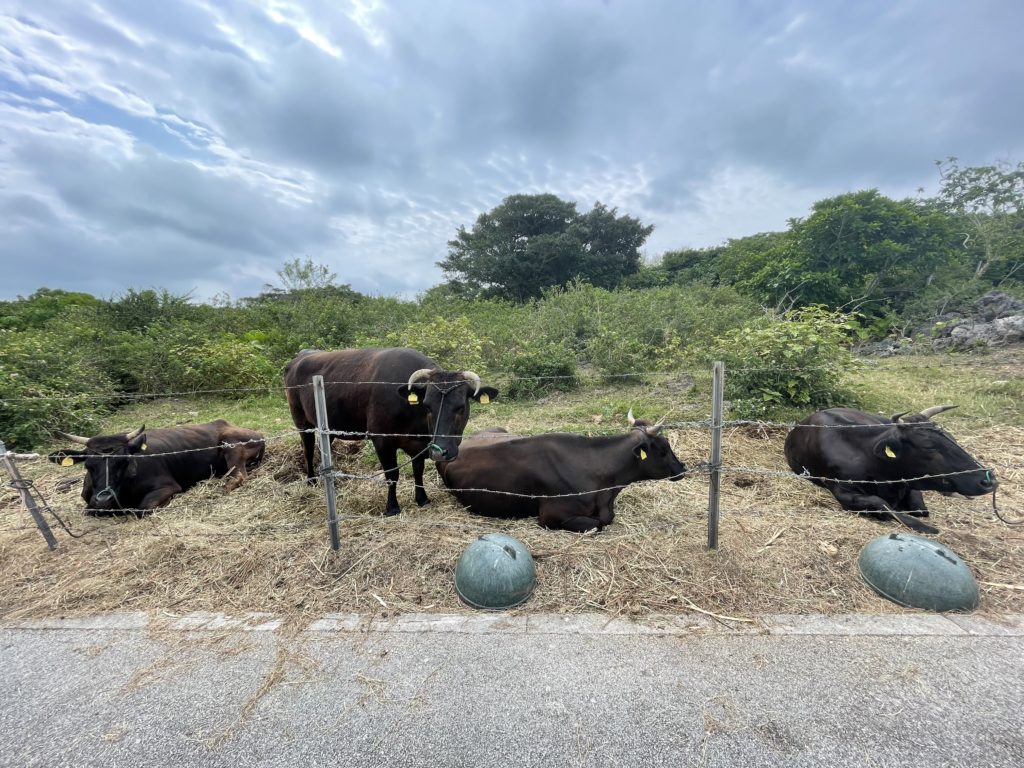 着いて少し漕ぎ進めると、大きな牛たちがお出迎えしてくれた。
