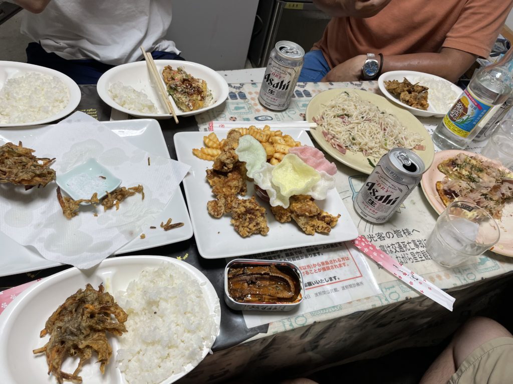 ワンルームの部屋に二段ベッド二つと、雑魚寝の人がいて、合わせて5人で寝たんだけど、おっちゃんたちのいびきがまじでうるさすぎた。(笑)