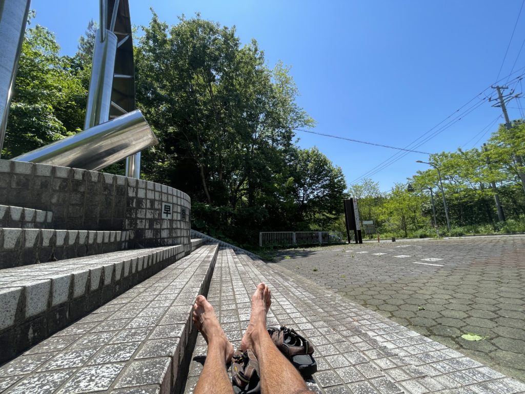 山の方に来てしまったのでコンビニなどは、なかったから道端の休憩できそうなところで昼寝をした。