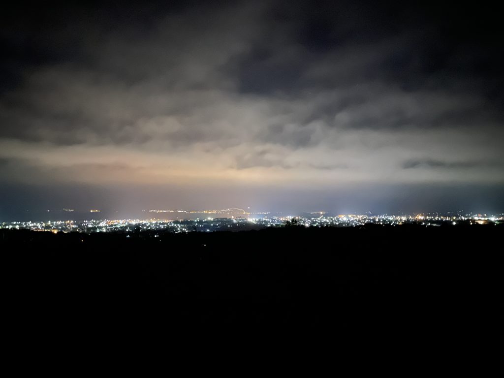 やっと町に来たのと、温泉のために山を登ってきたので夜景はすごく綺麗に見えた。