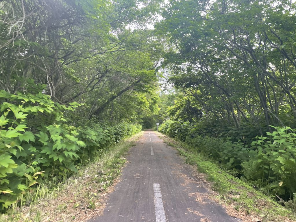網走まで30キロくらい、そのサイクリングロードは伸びていて蜘蛛の巣に10回くらい引っかかり、ちっさい虫に100回くらい突撃したけど